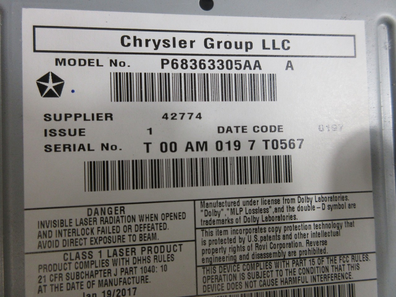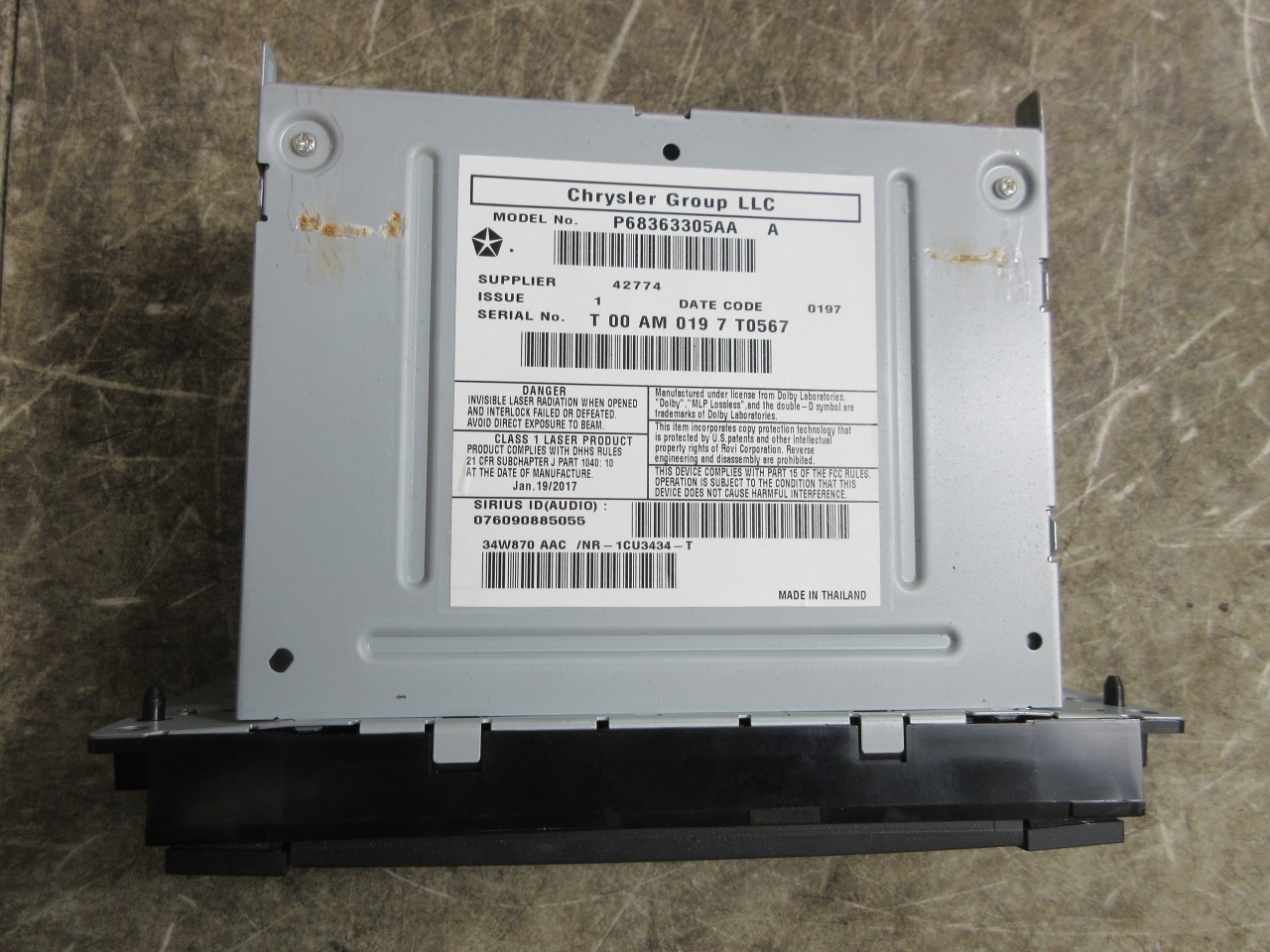 | Description | 11-2018 Jeep Wrangler JK OEM RHB MYGIG High Speed NAV Radio 68363305 |